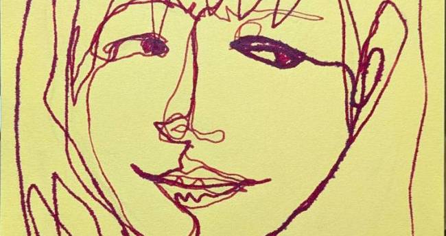 女性の顔をガラスペンで描きました。一筆書きです。