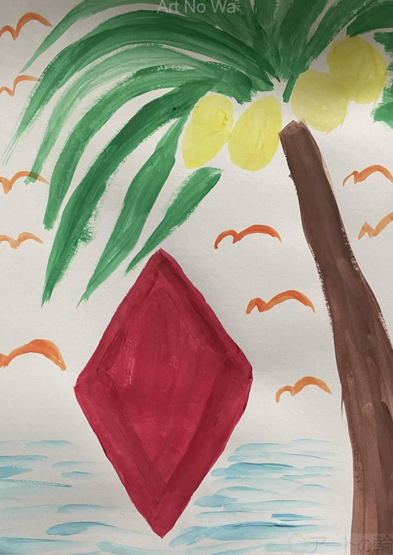 夏の美しさ、暖かさと共に飛びゆくカモメ達に命の力強さをイメージさせました。命は最高の宝という意味を込めて…。