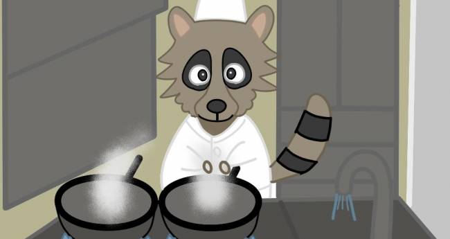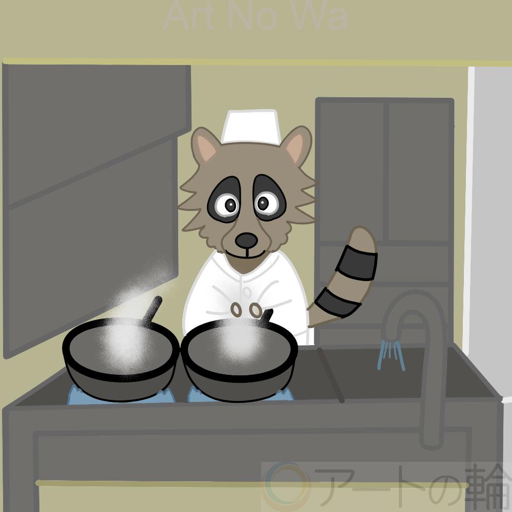 狸の料理長がコンテストに出て、優勝を目指している所を描きました。オリジナル作品です。