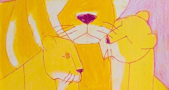 スズキタカヒロさんは動物の絵を描くのが好きで、よく動物の絵を描いています。今回のライオンの親子では1つの画面に複数の動物を入れるのが難しかったようです。