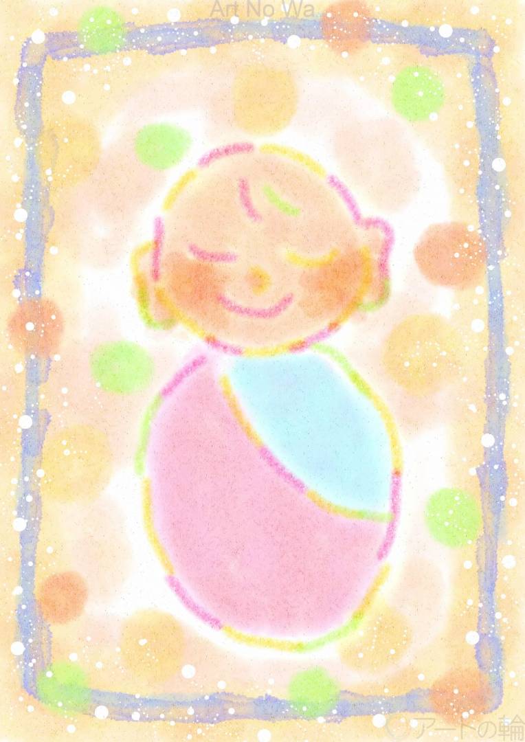 赤ちゃんが周りからの愛を受けて、すくすく育つイメージで描きました。