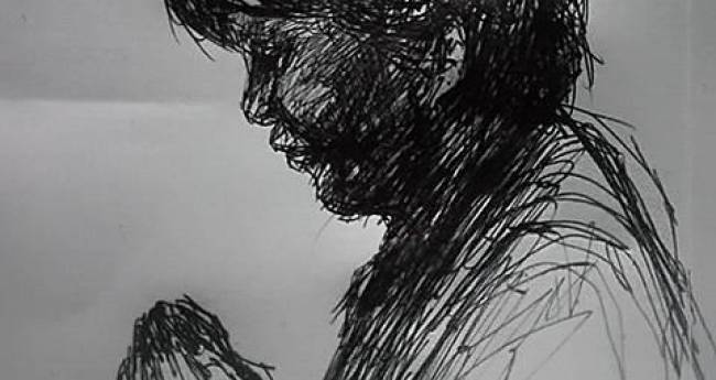 愛する障がい者の人達の家庭菜園の野菜、豆(障がいや者ドローイングボールペン画作品)