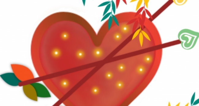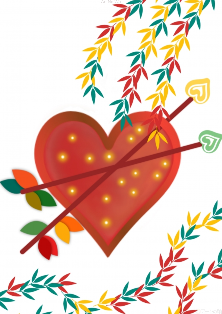 ハート柄をあざやかな秋の紅葉の色中に忘れない想い出を描きました
