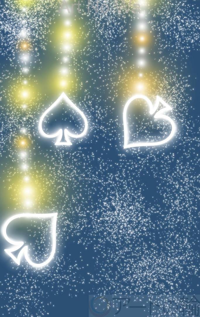 スペード柄を果てしないく銀世界が広がる夜灯の雪を描きました