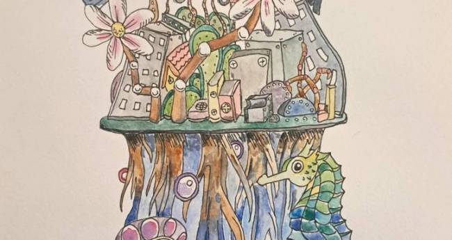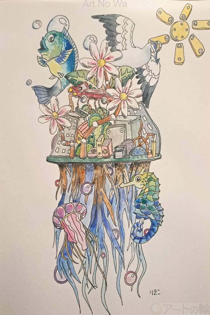 【画材】ボールペン,【画材】筆,【画材】水彩絵具