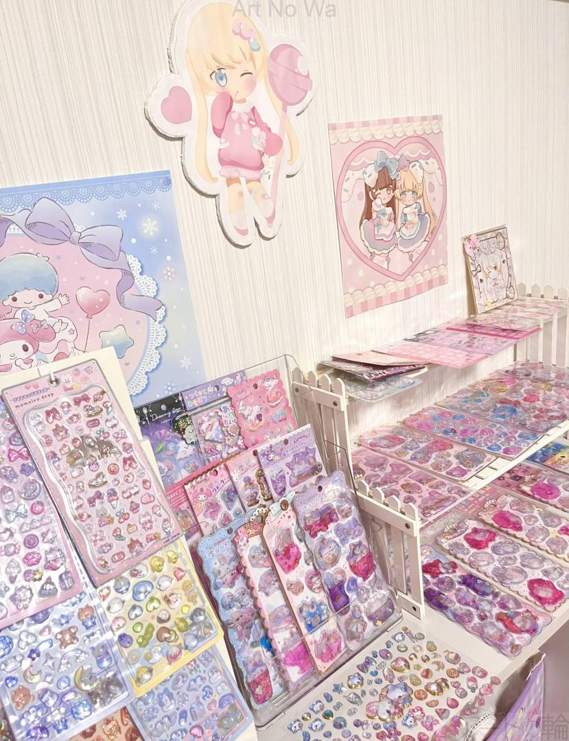 シールが流行してから最近は買えなくなりましたが、昔から地道に集めていたシールコレクション部屋に自分の絵のパネルなどを飾っています。自慢の部屋です