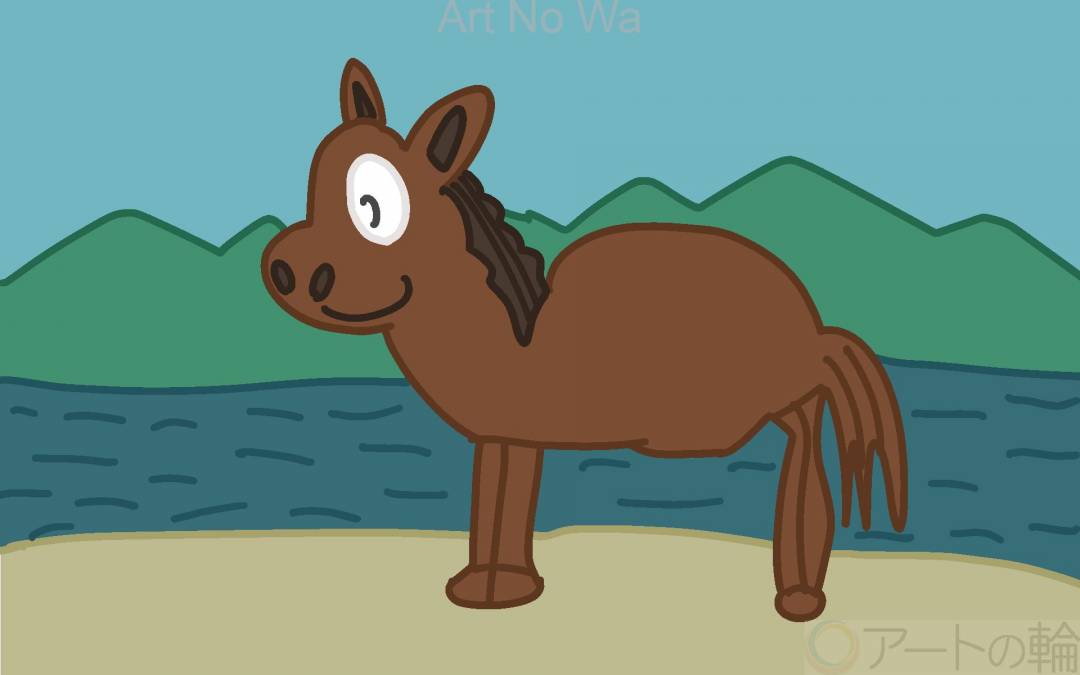 自然に放牧されている馬を描きました。オリジナル作品です。