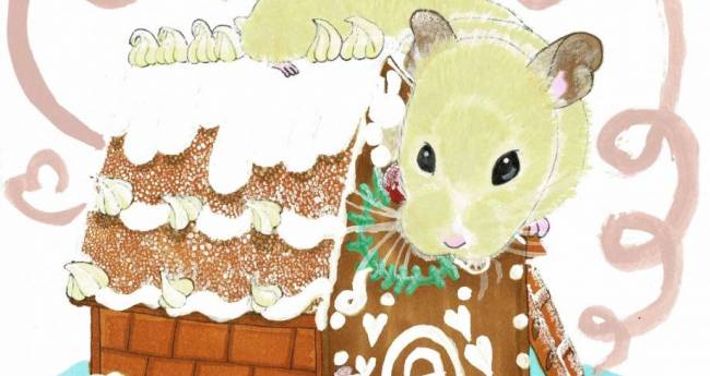 友人の可愛いキンクマハムスターちゃんと、友人の作ったお菓子の家を描きました。でも私知ってるよ、キミかわいい顔して破壊神だもんね?