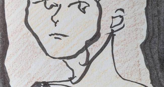 左手で描いた自画像