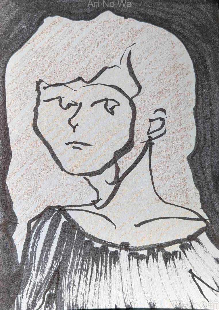 利き手ではない方の手で自画像を描きました。