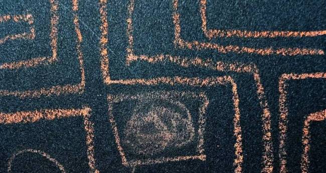 オレンジ色の迷路をイメージして描きました。