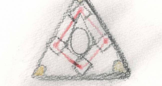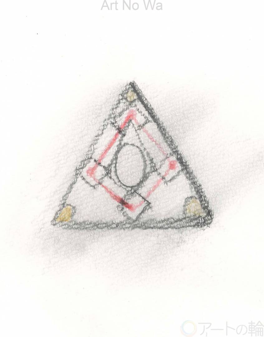 今回のテーマは”シンプル”です。使っている画材は鉛筆と色鉛筆を使いました。右側の線は濃く、下の線も濃くしたのはギリシャ文字のΔからの引用でした。今回締め切りが近くて製作開始時期が遅れて描いてしまったのが残念でした。