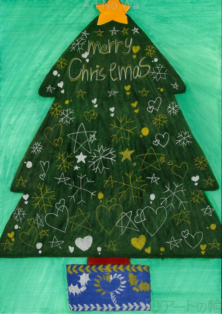 クリスマスツリーに様々な雪や星、丸、ハートなど描くのが楽しかったので、こちらに描きました。色ペンで描いてみたいという気持ちになったからです。