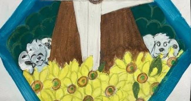 夏と言えばひまわり!ダイヤの窓からわんちゃんもこんにちは!