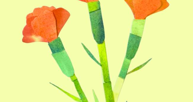 私は全盲です。そして私を育ててくれた母は本当の母親ではありませんでした。母の愛を求めて生き続けましたが、この年になって母をもっと愛したかったと考えるようになりました。渡せなかったカーネーションの花束を描いてみました。