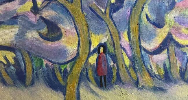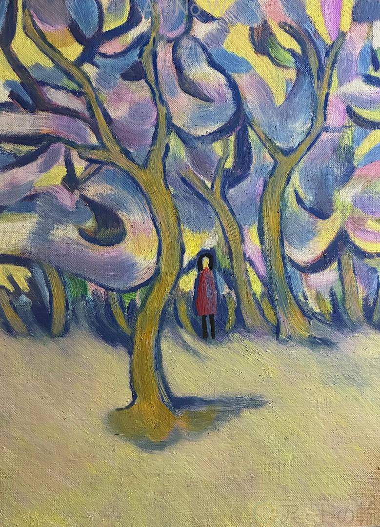 トランプのハートから、秋、そして愛を連想しながら、一年で一番気が弱る紅葉の木々によりそう人を描きました。