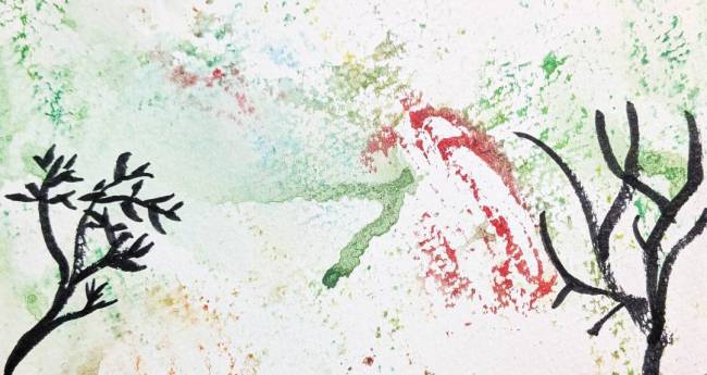 現実,非現実,屋外,自然,過去,現在,未来,太古,レトロ,夏,赤,緑,白,黒,植物,風景,明るい,たのしい,かわいい,わくわく,2D