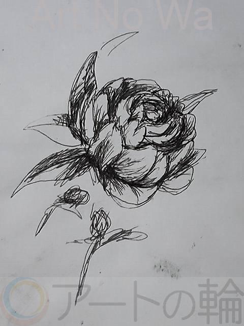 寒花、落書きドローイング障がい者アート作品、もったいないから棄てるような少し汚い紙に描いた