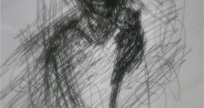 障がい者ドローイング絵画(作品霊老猫)