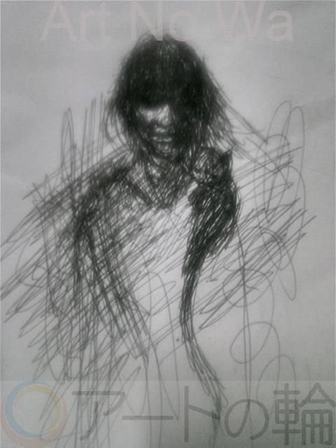 霊的朧月ドローイング障がい者アート(作品霊的老人老猫、絆)