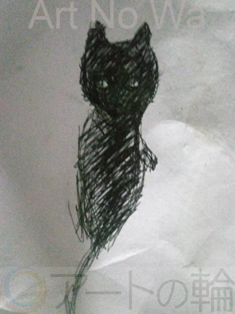 障がい者ドローイング絵画(作品霊老猫)