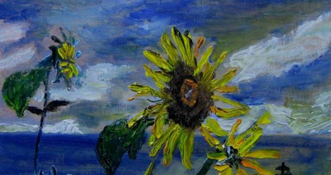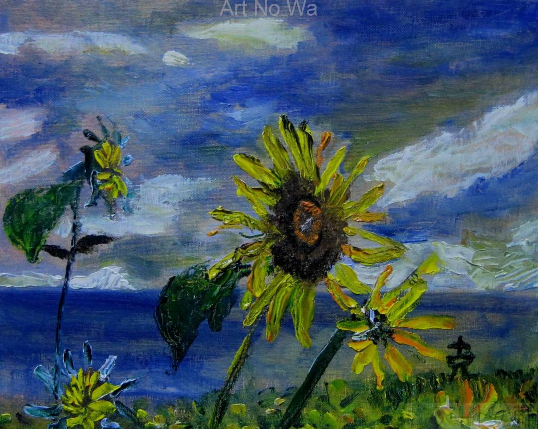 初めて描いた油彩ひまわりの試作品でF3号で描いた絵です(30代後半)