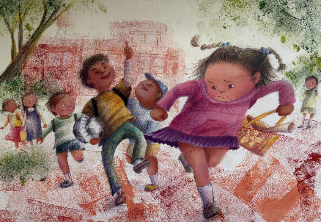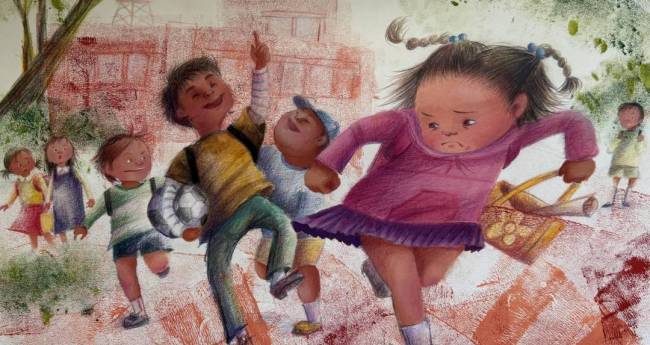 がっこうの かえりみち。 たけるくんは すうちゃんを からかいました。 「やーいやーい、すうちゃんの耳、うさぎ耳!」 すうちゃんは はしって にげだしました。 「たけるくんなんて、だいきらい!」