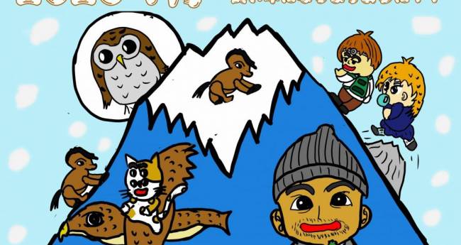 2026年 グループホームイラストです。演技の良い一富士 二鷹 三なすびを取り入れ明るい仕上がりにし、昨年は不調が続いたので今年は僕もグループホームの皆さんもこの記事をよんでいるあなたも良い年になりますようにと願いをこめてメッセージを入れました。