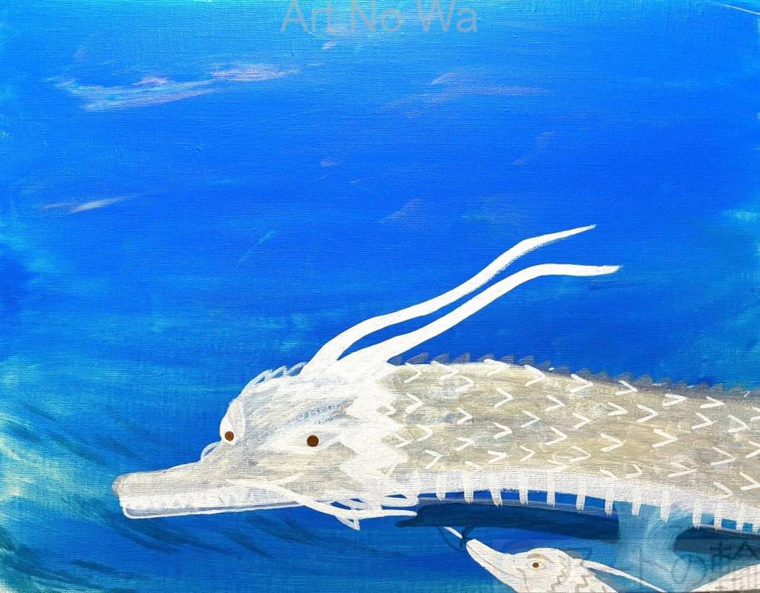 どこにいても駆けつける目にみえない存在を、子供を守る親(白龍)を描いて表現しました。