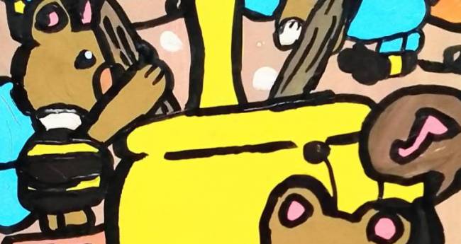 クマさん蜂が協力してハチミツを作っている様子を描いてみました。