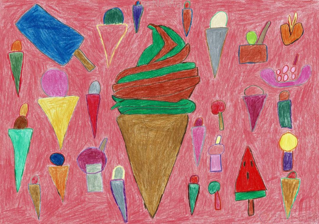 ソフトクリームとたこやきをたべたいなぁと思いながら描きました。