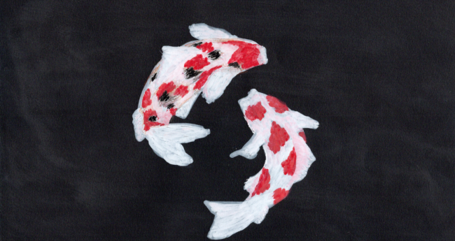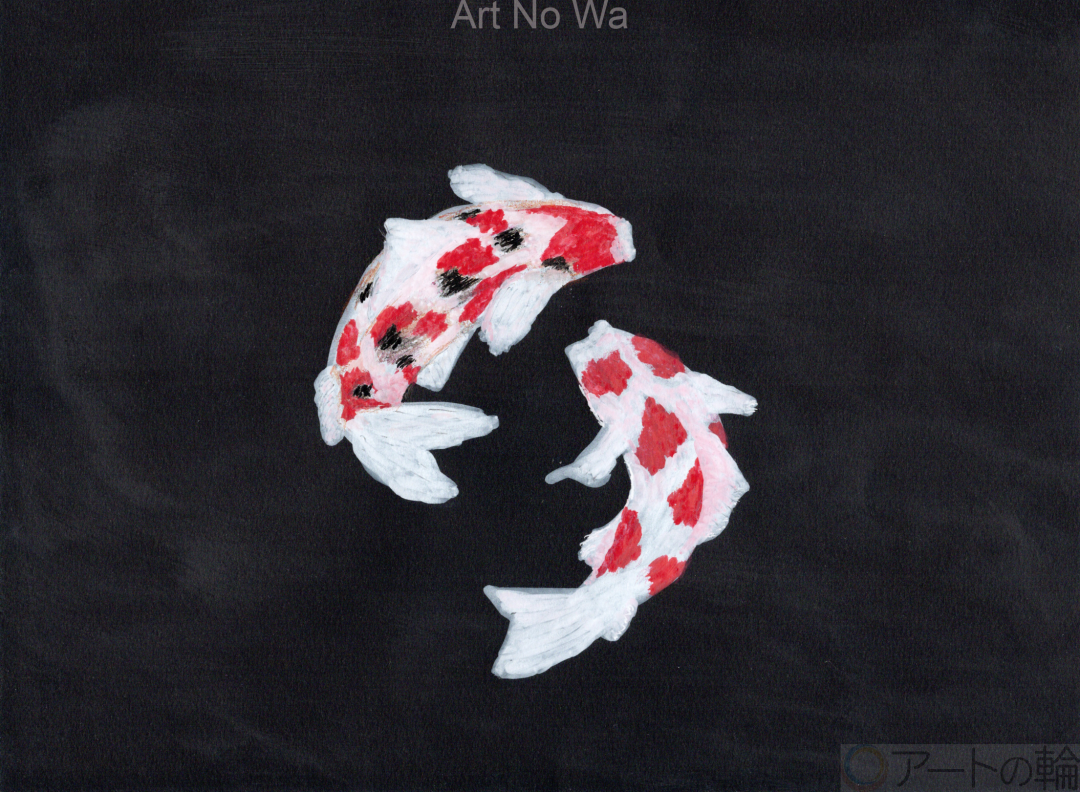 錦鯉を黒い画用紙で描いてみました。