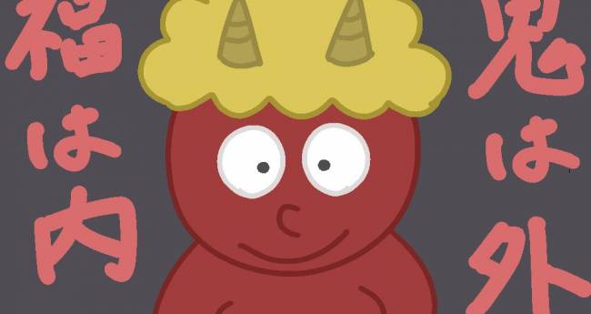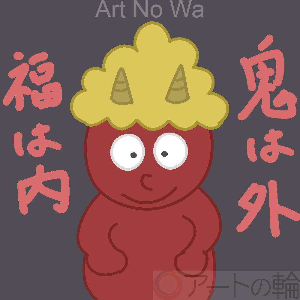 非現実,季節の行事,2月,赤,黄色,白,黒,想像上の生き物,子供,明るい,かわいい,どきどき
