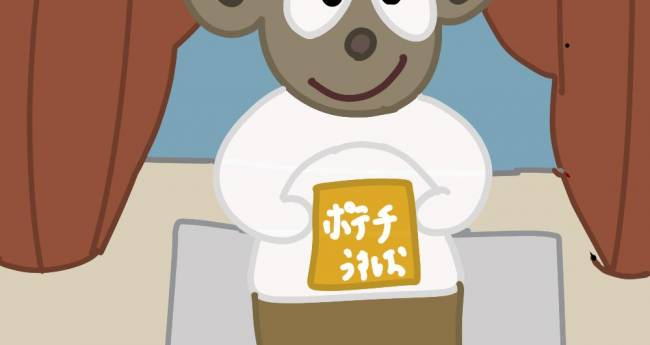 子供の猿がお菓子を持っている所