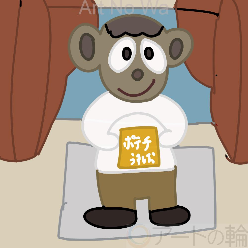 子供の猿が部屋で、お菓子を持っている所を描きました。オリジナル作品です。
