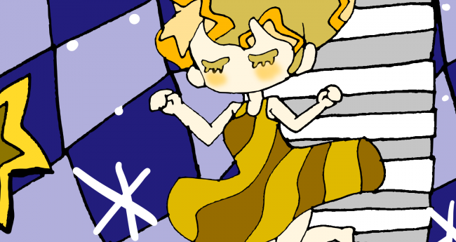 星空に浮かぶ螺旋階段を下りている少女を描いてみました。