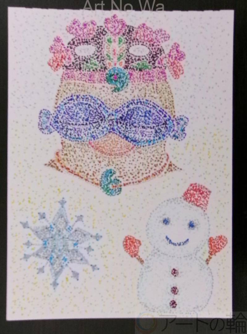 今年今日が、初投稿に為ります。今年も、宜しくお願い申し上げます。で、昨年は、11-12月と人生が大きく変化し、なかなか創作活動に向き合う事、集中が出来ずの、ほんの少しはでしたが。それは、父が亡く為り、私はホームへの入居と為りました。と謂う事で、今年今後は、創作活動をぎゃんばりますです。で、今日のDCプログラム内で描いて来た点描イラストで、勾玉を通して、雪だるまさんをお友達にと思う遮光器土偶さんです。