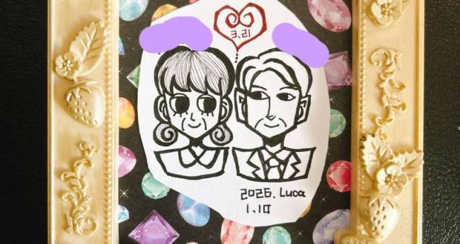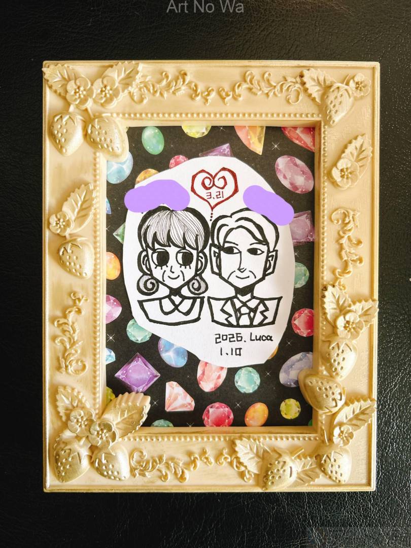 じいちゃんとばぁちゃんの似顔絵です。2人は今体が痛いらしく早く痛みが治るようにと永遠に幸せな2人であってくださいと願いをこめて描きました