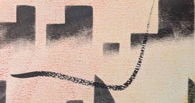 蜃気楼に染まる街を描きました。