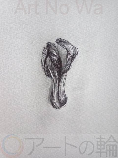 温優野菜、チンゲン菜(心描ドローイングボールペン絵画)