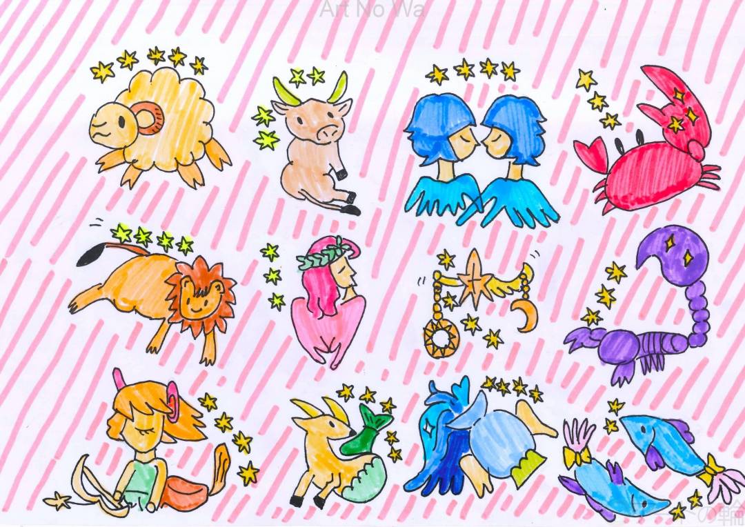 今回は、12星座のイラストを描いてみました。