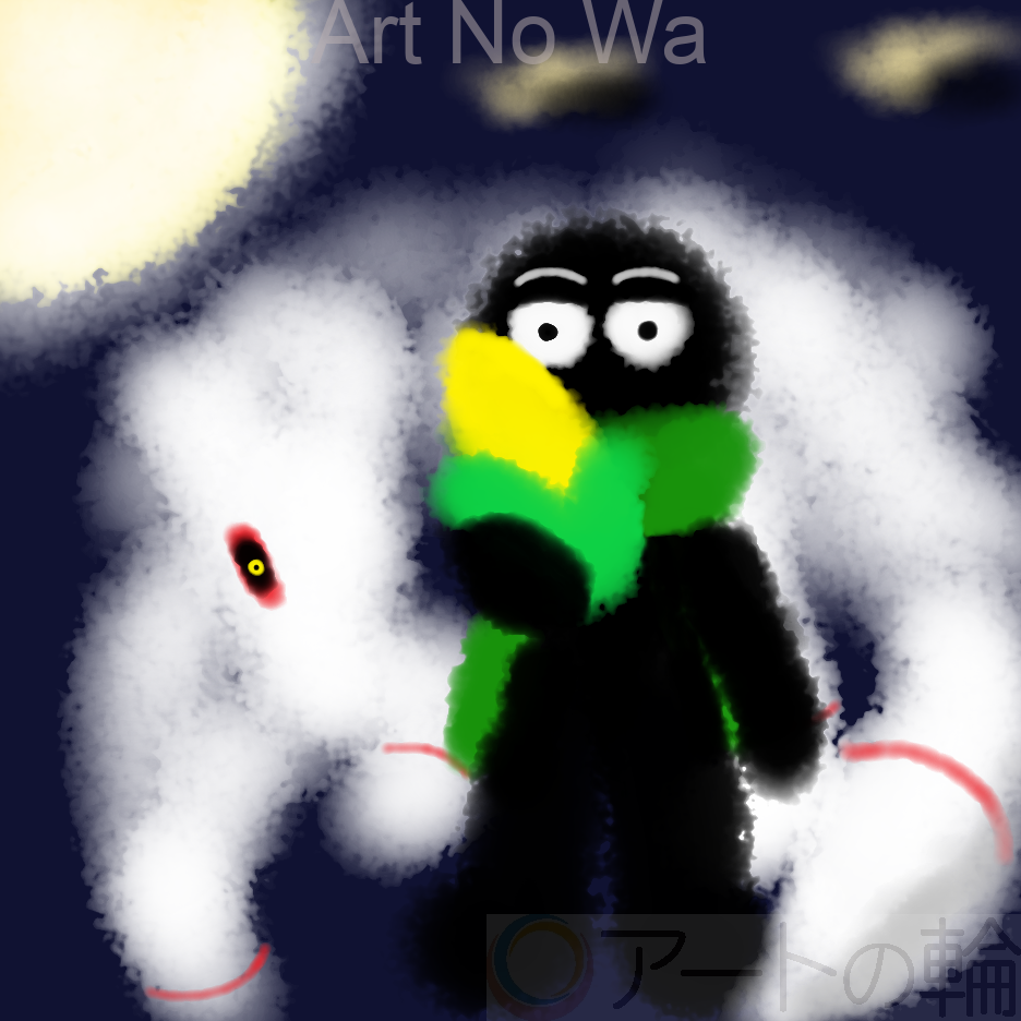 現実,非現実,屋外,過去,緑,白,黒,人物,動物,想像上の生き物,明るい,2D