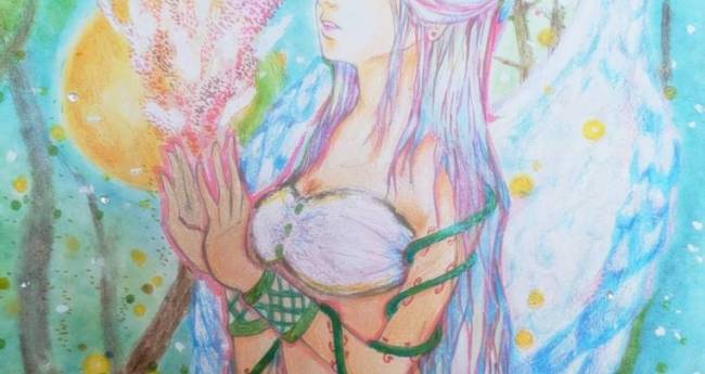 水の女神をイメージして描いた絵です。幻想的になるよう心掛けました。