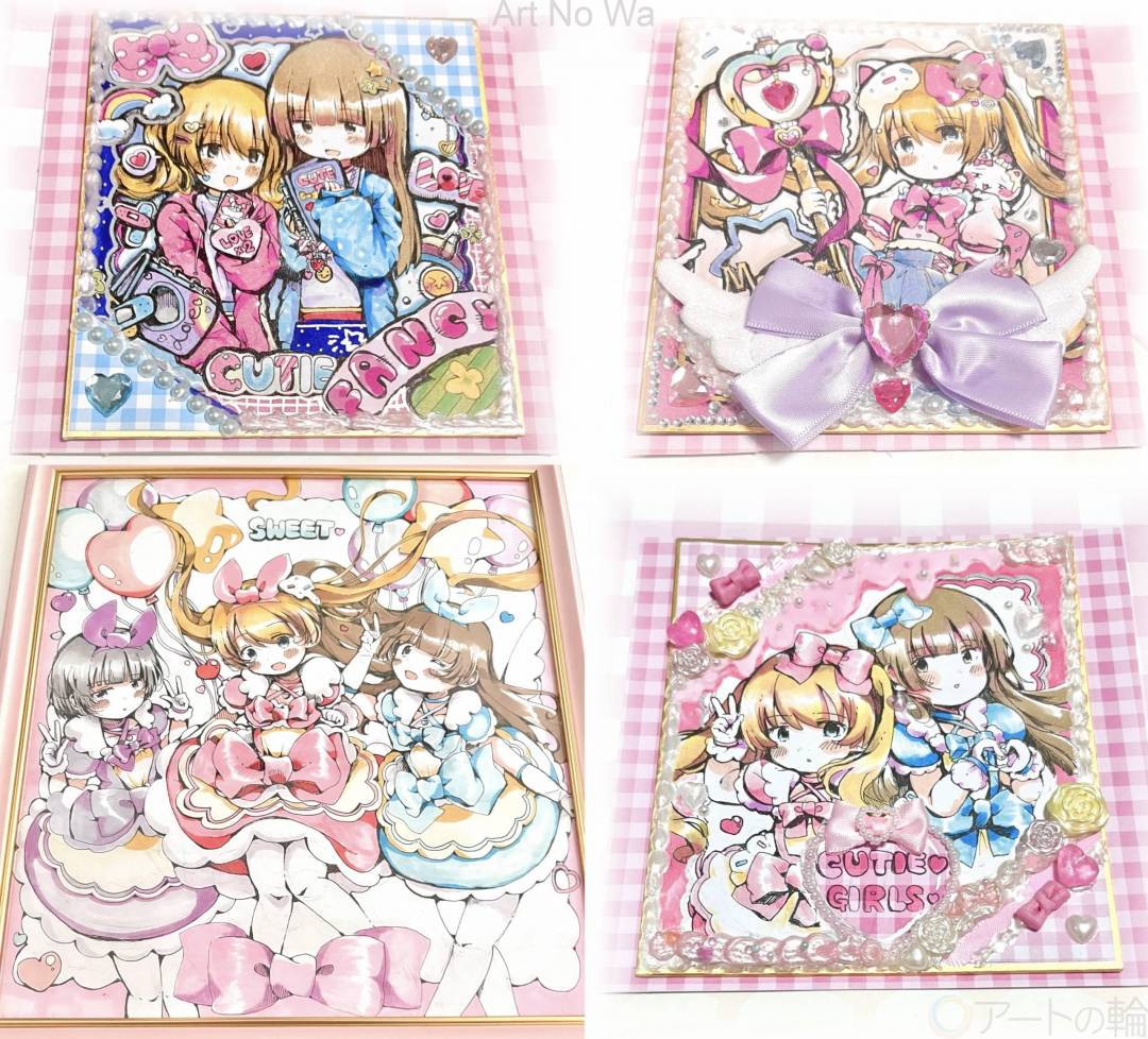 オリジナル色紙で可愛いく描けたものです。右下はお嫁に行きましたが傑作は手元に残して置きたくなります。