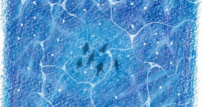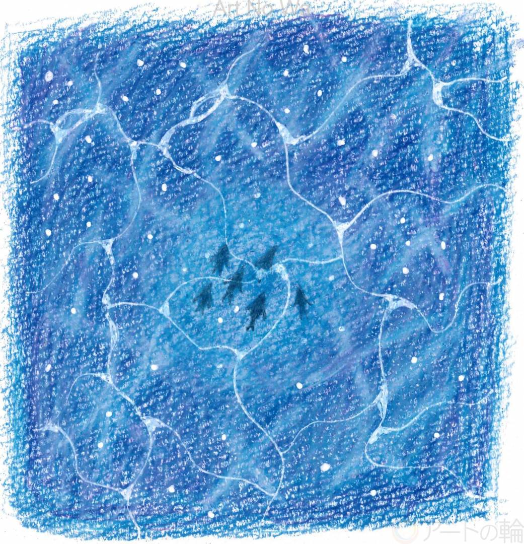 海の中を泳いでいる魚影を描きました。海のキラキラの表現が楽しかったです。