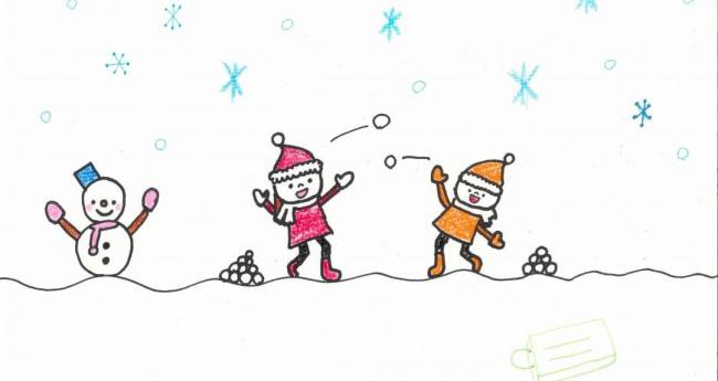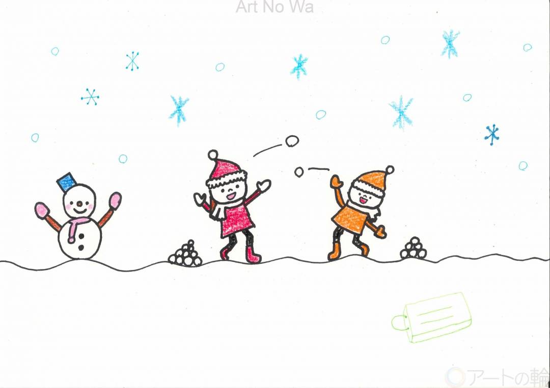 子供たちが雪に反応して遊んでいるところを書いてみました
