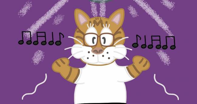 猫がノリノリで、ダンスをやっている所を描きました。力作です。
