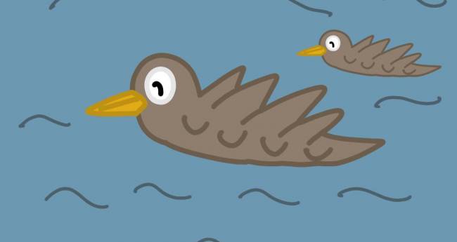 現実,屋外,自然,川,水色,青,白,黒,動物,風景,明るい,たのしい,かわいい,わくわく