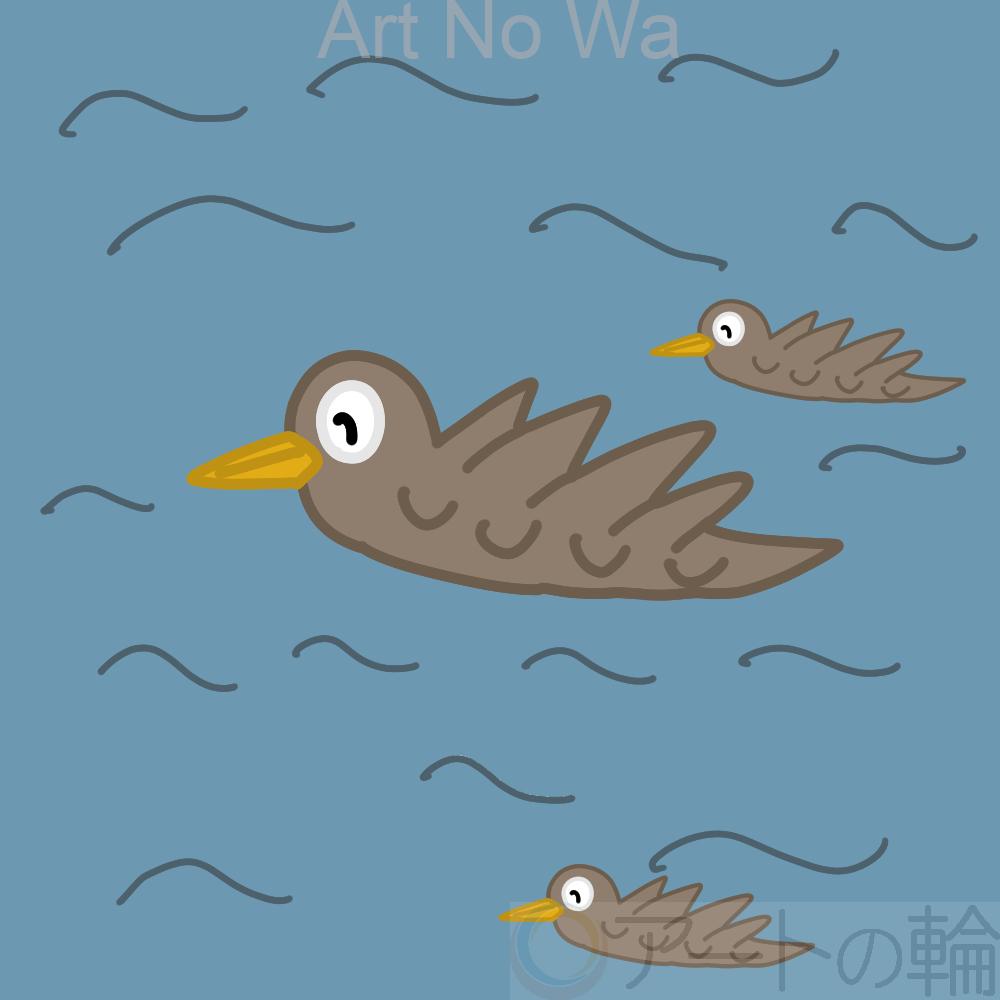 川に鴨の親子が泳いでいる所を描きました。オリジナル作品です。
