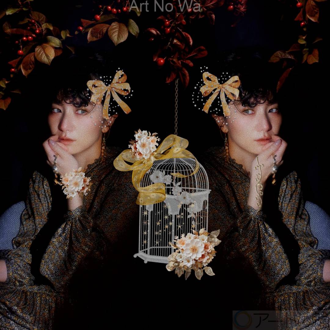 セルフポートレートのコラージュ作品です。私の「好き」を詰め込みました。「アール・ヌーボー」なイメージです。